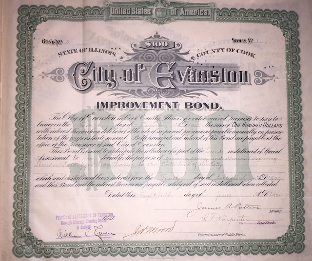 Recently someone on eBay was selling several bound volumes of City of Evanston Improvement Bonds: