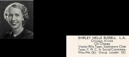 Phil and Claire's daughter Shirley-Nelle Russell attended Northwestern University. She graduated in 1939 with a degree in Language Arts. Here is a photo of her when she was a Junior at NU in 1938: